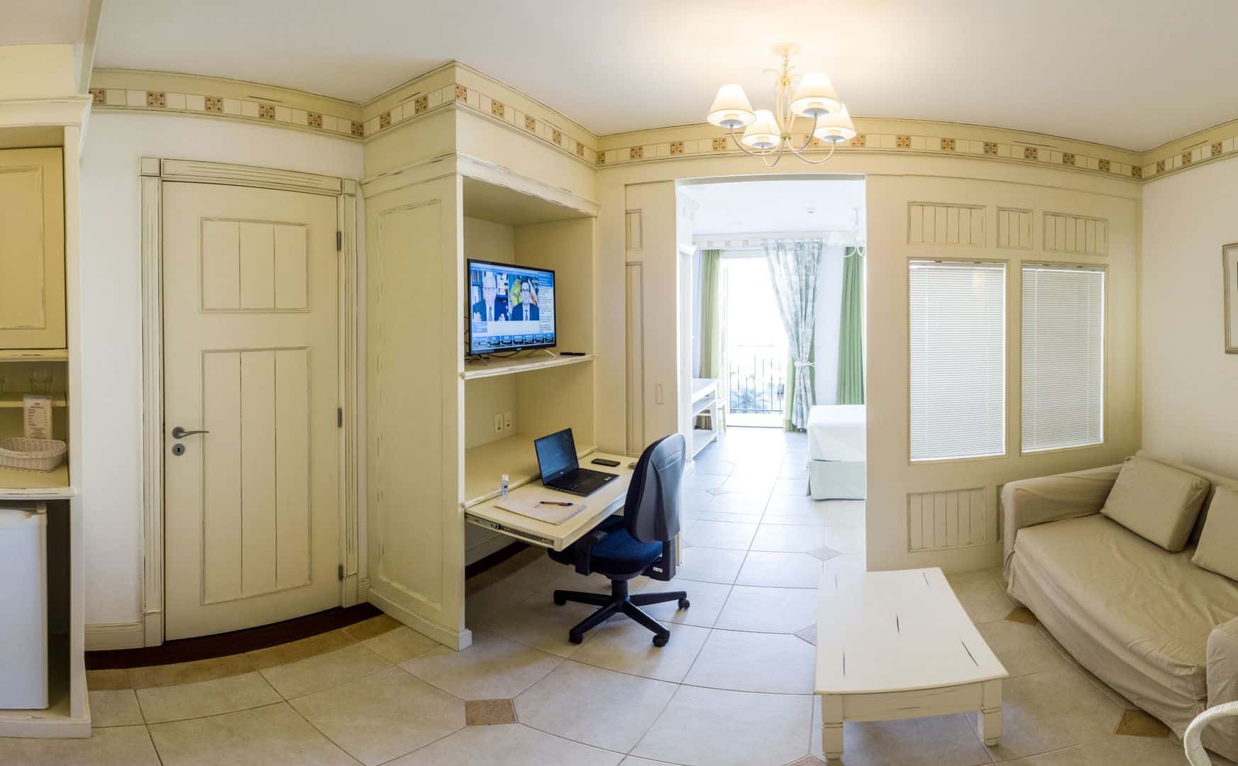 E para marcar esta retomada das hospedagens, o IL Campanario preparou uma novidade para os hóspedes que desejam conciliar lazer e trabalho. É o pacote Hotel Office, voltado para famílias que viajam e precisam de um ambiente tranquilo para home office. Reservando uma Suíte é possível liberar a Suíte Júnior (com conexão entre os dois espaços), mediante uma taxa extra por dia.