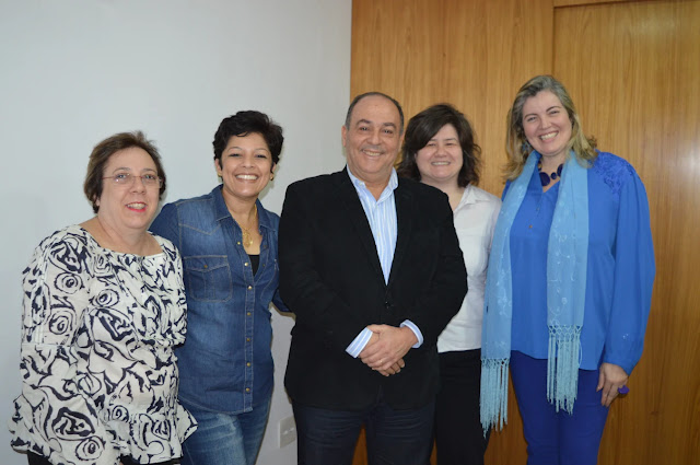 O presidente da ABAV Nacional, Geraldo Rocha, entre a coordenadora do ICCABAV, Beatrice Borges, a supervisora de Eventos, Jerusa Hara, e as sócias na Mestres da Hospitalidade, Shirley Salazar e Andrea Nakane, que renovam a parceria com a entidade na curadoria da Vila do Saber